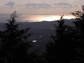 | 山行記 | ●前回この山に登ったのは丁度10年前、その時の山頂付近は、伐採したばかりで、眺めのいい山という印象が残っていた。この日は、休日出勤の振替で午後から休み、それでは久しぶりに、ということで出かけてみた。 ●豊川市街地から財賀寺へ向かう。道沿いには、狂い咲きというよりも、あたかも春のように満開に咲くモチツツジの株が目立つ。やはり今年は暖冬なのだろうか。 ●財賀寺の仁王門近くには、いつの間にか「豊川自然遊歩道利用者駐車場」と表示のある10台程駐車できる駐車場が整備されており、トイレも建てられていた。 ●まずは国の重要文化財の金剛力士像のある仁王門を潜って石の階段を上る。上を見上げるとうんざりとする程の階段は一旦舗装道路に出るが、そこには弘法大師を祀る慈晃堂がある。 ●舗装道を少し歩き再び石段の道に入る。急な男坂、やや緩やかな女坂を登りきったところが財賀寺の本堂だ。本堂では、正月の準備なのか、2人の人が掃除などの作業をしていた。 ●10年前の記憶では本堂の右から山道に入っていった記憶があったので、そちらへ続く踏み跡を辿っていったが、道がはっきりせず、踏み跡も消えてしまった。とりあえず、強引に道無き道を進んで本来の道に出ることができたが、まったく記憶というものは曖昧なものだ。帰りに気付いたのだが、道は本堂ではなく、本堂の上にある建物の右手から始まっていた。 ●山道を少し登ると、舗装はされていないものの車の通れる林道に出る。あとは暫くこの道を辿る。暗い樹林帯から笹の明るい雑木帯に変わると広場に出る。10年前はここからも豊川市街やや三河湾を見ることができたはずだが、植林が伸びて今ではそんなことは想像もつかない程だ。 ●広場の先は普通の登山道となり、背の伸びた植林の中をジグザグに上っていく。10年前はここも開けていて振り返れば展望が広がっていたはずで、おまけに道標も一切無いので本当にこの道でいいのか不安になってくる。 ●やがて駒場池からの道と合流する所でようやく「豊川自然遊歩道」の看板を見つけとりあえずは一安心。後は観音山山頂を目指して急な登山道を登る。意外と長く感じる急なこの道を登りきったところが観音山山頂だ。 ●観音山山頂には山名の通りの小さな観音像が祀られている。10年前とは違い展望の範囲が狭くなったものの、豊川豊橋の市街地や三河湾、渥美半島まで見渡すことができた。 ●帰りは来た道を戻り財賀寺本堂からは舗装道を歩いて下りることにしたが、古刹らしくカエデの大木が多く、名残の紅葉が、傾いた陽を透過して美しく輝いていた。 |