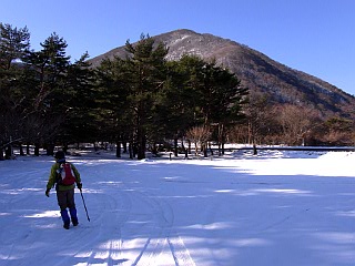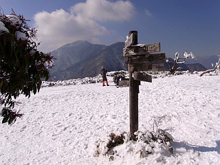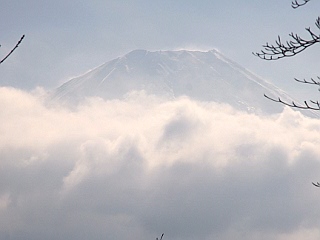 | 山行記 | ●この時季、山頂に少し雪がある程度だろうとタカをくくって出かけたが、車の窓から見る天使山塊は思った以上の雪で、標高の低い天使ヶ岳も真っ白。結局駐車場から雪がある状態だった。出掛けに慌ててスパッツを捜せないまま出てきてしまったが、幸い同行者がロングスパッツとショートスパッツを持っていたので、ショートスパッツを借りて登ることになった。 ●駐車場からは、キャンプ場の中を通って登山口へ向かう。あちこち曲がりながら進むが、案内が要所要所に立てられているので迷うことはない。 ●山道に入るがそれ程雪はなく、踏み跡もあるが、体力を消耗するので、先を行く先頭とは間をあけてマイペースで登る。途中傾斜が増してくるので軽アイゼンを装着した。アイゼン無しでも行けそうにも思えたが、断然歩き易くなったので大正解だ。 ●枯れた樹間越しに御坂の山々や三ッ峠山などが望まれたが、登るのに従い富士の姿も見えるようになってきた。東屋のある石仏の休憩所を過ぎるといよいよ本峰への登りにかかる。急な斜面だが大きくジグザグに道が付けられているので、樹氷や展望を楽しみながら気持ちよく登ることができる。 ●丸い山なので行く手に空が開けるが、なかなか頂上が見えてこない。ようやく頂上かと思ったところから更に先に頂上らしいピークが見えてくる。その先で本栖湖畔からの道と合流すれば山頂まではあと少しだ。 ●竜ヶ岳山頂は見た目の通りにだだっ広い。雪の多く残る山頂からは、富士山がひときわ大きく見え、振り返れば南アルプスの主脈をすべて見ることができる。樹氷も美しく、青空を背景に一層引き立っていた。 ●気持ちがよく、何時までいても飽きないが、切りをつけて下山にかかる。下山は先程の分岐まで戻り、本栖湖畔へ下りるコースをとる。北面なので雪がやや多い急な斜面だが、緩やかなジグザグ状に道が付けられているので歩き易い。樹間越しに碧い水をたたえる本栖湖の湖面や雪の南アルプスなどの山々が見ることができて、単調な下りも楽しかった。本栖湖畔からはまだ雪の残る道を歩いて駐車場まで戻るだけだ。 |