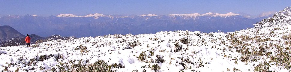 | 竜ヶ岳山頂から見る南アルプスの主脈 | ||