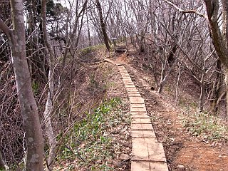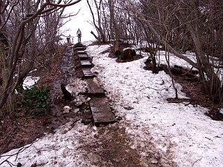 | 桜尾根コース登山口 | 灯台コース合流点付近 | 山頂付近の残雪 |