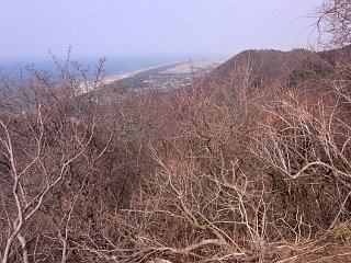 | 灯台コースはこんな険しいところも | 角田山山頂を振り返る | 海水浴場を見下ろす |