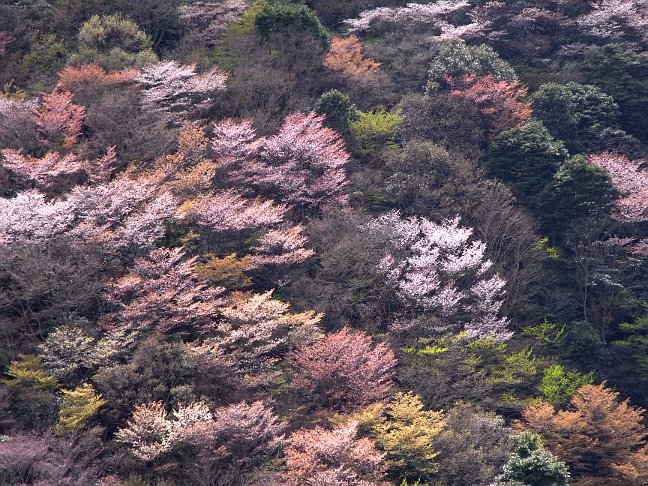 山肌の山桜が美しい |