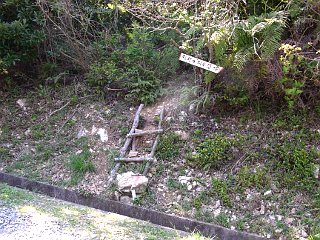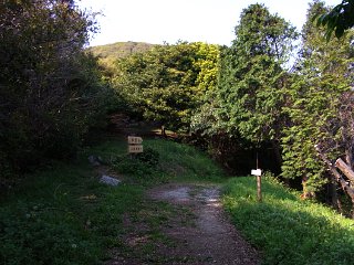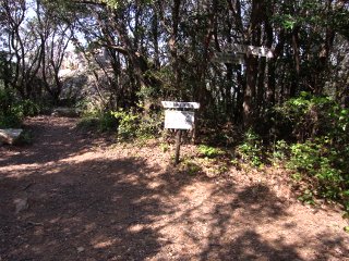 | 緩やかコース仁崎峠登り口 | 急な階段コース仁崎峠登り口 | 桟敷岩新道、遊歩道合流点 |