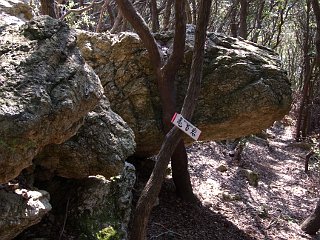 | 行程 | 藤七原湿地駐車場(13:25)・・・舗装道(13:41)・・・家康公の腰掛岩(13:57)・・・衣笠山(14:21-25)・・・桟敷岩(14:28)・・・衣笠奇岩めぐり入口(14:31)・・・桟敷岩新道・バイパス合流点(14:41)・・・桟敷岩新道・直登コース分岐(14:45)・・・東屋(14:57)・・・仁崎峠(15:13)・・・東屋(15:23)・・・遊歩道分岐(15:28)・・・松尾岩分岐(15:36)・・・白谷方面分岐(15:46)・・・舗装道(15:50)・・・藤七原湿地駐車場(15:57) | |