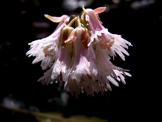 | 山行記 | ●ヤマイワカガミを観るためにこの山に登るようになってから今年で5年目になる。これまでも、登る度に、咲いているのかどうかが気ががりで仕方がなかったが、ここ数年はいい時季に当たったので、今回も期待が膨らむ。 ●豊川から、第二東名高速道路の工事が真っ盛りの杣坂峠を越えて、何時もの広場に車を停めて歩き始める。舗装道を2〜3分歩き「風頭山登山口」の案内に従って林道に入る。薄暗い林道にはスルガテンナンショウやコミヤマスミレがひっそりと咲いている。 ●その先でコンクリートの橋を渡ると林道は分岐するが、ここにも案内があるので、それに従って右手の舗装された林道に入る。その林道は、舗装されてはいるが、薄暗く傾斜もやや急だ。この辺りはイズセンリョウの白い花が目立っていた。 ●林道終点は広場なっていて、その先は登山道となる。この日は午前中雨が降りやすいが午後からは晴れるという予報だが、細かい雨が降り続いている。水分を多く付けたヤマアジサイが背丈ほどに覆いかぶさる道は、スパッツはしてきたもののそれでは濡れを防ぐことができない。かといって今更カッパを着る気にもなれず、早く雨が止むのを祈りながら歩く。 ●傾斜が増してくると、突然林道に飛び出す。登山道は林道の反対側に付いているので、再びその山道に入る。初夏にはヤマアジサイで埋め尽くされる谷から、転げ落ちそうな急斜面にジグザグに付けられた道を登り詰めたところが稜線だ。 ●稜線分岐からは、小さなアップダウンのある快適な稜線上の道を進む、途中、岩の露出したところでは、生憎の天気で視界が利かないものの、麓の小学校などはかろうじて見ることができた。 ●露岩を過ぎると道は傾斜を増し、山頂への最後の登りになる。アキレス腱が伸びるような急傾斜をひと頑張りすれば、狭い風頭山の山頂に到着する。期待したヤマイワカガミは、咲いているものが少なく、開花前や開花後のものもあまり見られなかったので、今年はあまり咲かない年なのだろうか。 ●ようやく雨は止んだものの依然視界は悪く、山頂直下の展望所からは、周囲の山はおろか、何時も眺める麓の田園風景すら霞んで良く見えなかった。 ●この時点で、時間にはまだ余裕があり、今日は一人なので、以前から気になっていたその先の三角点のあるピークまで行ってみることにした。道は、ここまでの稜線上の道の延長で、良く踏まれた道が続き、テープなどもあるので迷うことはなさそうだ。 ●ただし、距離は思ったよりも長く、間違え易いピークが幾つもあるので、三角点を見るまでは騙されないようにと思って、半信半疑ながらも先へ進むことにした。特に、三角点のあるピークの手前に、いかにもそれらしい、石の積まれたピークがあるので、危うくこれには騙されるところだった。 ●三角点のあるピークは、地形図では651.1mのピークで、立派な三等三角点がある。またここには、木に「風頭山40分、本宮山2時開」と書かれたテープが貼ってあり、ここから本宮山へ行くコースもあるということを知り、またの機会にこのコースを試してみるという楽しみが増えた。帰路は、来たコースを戻る。 |