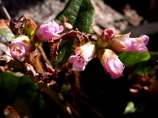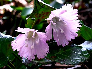 | イワウチワとアルプス展望の安曇野の里山 | ||