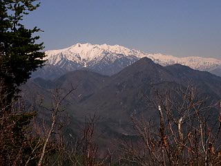 | 雨引山山頂 | 雨引山山頂から見た後立山連峰 | 峠分岐付近から見た唐沢山 |