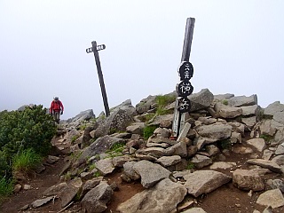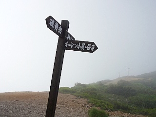 | 横岳(大権現)山頂 | ガスの中時折硫黄岳火口壁が見える | 硫黄岳から夏沢峠を目指す |