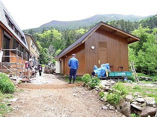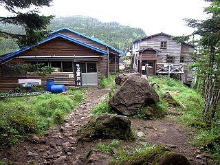 | 大きなケルンに導かれて硫黄岳山荘へ向かう | 硫黄岳山荘 | 横岳手前の鎖場 |