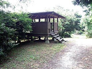 | 東屋 | ゆるやかコース出口から見た仁崎峠 | ストックにとまったオニヤンマ |