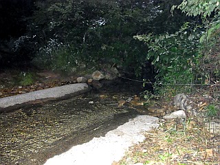| 鷹ノ巣の登山口入口はまだ暗い | コンクリートで固められた渡渉点 | 林道から登山道へ |