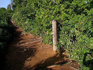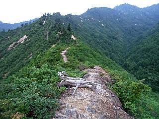 | 山行記 | ●あと12山となった日本百名山、今回は平ヶ岳を目指す。何時も睡眠をとる時間がなく大変なので、今回は前日の昼に出て、十分な睡眠時間をとろうという計画だ。 ●ところが、仮眠予定の米山SAは暑くて眠れず、最後にはエアコンをかけてみたがもう遅く、早出した効果は全くなく、結局何時ものように、十分な睡眠がとれないままの登山となってしまった。 ●登山口の鷹ノ巣に着いたのは午前4時頃、既に多くの車が停まっていて、辺りはまだ暗いが、出発の準備をしているパーティーが数組見られた。ここには清潔な洋式のトイレが設置されていた。 ●こちらも準備が整うと、ヘッドライトを点けて出発した。しばらくは林道のような道なので、暗くても歩き易い。暗い中でも、ヨツバヒヨドリやノリウツギの花を確認することができた。 ●コンクリートで固められた沢を渡り、その先で案内に従って山道に入る。最初は緩い傾斜も、突然急な坂になる。辺りが明るくなり始めた頃、痩せた尾根沿いの道を歩くようになる。 ●左右が切り立った急な登りは下台倉山まで延々と続く。ザレた岩の急登は、歩き難く、要所要所にロープが張られているが、それに頼らなければ登ることのできない個所もある。尾根には、ミヤマママコナやホツツジ、コメツツジなどが咲いていた。 ●尾根も最後は更に急になり、傾斜が緩やかになったと思うと、下台倉山山頂の表示のある所に出るが、山頂といった雰囲気はない。 ●ここから台倉山まではそれ程標高も変わらず、平坦なアップダウンがあるぐらいかと思うが、とんでもない、登山道は、木の根で歩き難いアップダウンやぬかるみが多く、なかなか台倉山まで到着することができない。 ●花は、尾根上で見た花に加え、ノギランやネバリノギラン、そして林床では、コイチヨウランやミヤマフタバランなどのラン科の花も見ることができた。 ●ようやく着いた台倉山は、三角点があるのみだが、展望がよさそうで、山頂までは見ることができなかったが、燧ヶ岳や会津駒ヶ岳などを確認することができた。 ●台倉山を下ると台倉清水、更に、アップダウンの先には白沢清水という水場がある。ぬかるみは相変わらず多いが、木道が設置されており、木道が乾いた状態ならば歩き易い。 ●白沢清水の先からはいよいよ池ノ岳までの急登が始まる。ザレた岩をよじ登るような急登にはやはり要所要所にロープが張られているが、リズムも狂い、疲労感は高まってくる。 ●その急登を登り詰めると、池ノ岳の山頂で、一帯には池や地塘の点在する大らかな湿原地帯が広がる。イワショウブやキンコウカ、タテヤマリンドウなどの、湿原を好む花が咲き競っている。 ●ここから平ヶ岳山頂まではまだ1キロ程木道を歩かなくてはならない。池ノ岳を下り、緩やかに登り返したところが平ヶ岳山頂で、三角点と山名の標柱が立てられているだけで、狭くて展望もよくない。そのかわり、直下には木道の横に木の板が貼ってあり、休憩ができるようになっていた。 ●山頂からは、せっかくなので玉子石を見に行く。一旦池ノ岳との鞍部まで下り、案内に従って木道を登っていく。水場を過ぎ、池ノ岳からの道と合流すると、歩き難い傷んだ古い木道を、池ノ岳の一画を下り、その先に見える小ピークを登る。 ●玉子岩はそのピークの反対側の直下にある。思っていたよりも小さいが、写真やHPで見た通りの名物を見ることができた。後は池ノ岳まで戻り、往きに来た道を延々と戻らなくてはならない。 ●玉子岩付近でパラパラし始めた雨は、池ノ岳の山頂でいよいよ本格的に降り始めた。カッパとザックカバーを付けて下り始める。急な登山道は雨で更に滑りやすく、慎重に下らなくてはならないが、カッパで動き難いのに加え、暑い。 ●悪条件の中の約4時間半の下りはきつく、消耗が激しかったのと、かねてより傷めていた膝の具合を考慮した結果、翌日目指すはずだった会津駒ヶ岳はまたの機会に譲ることにした。 |