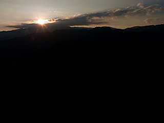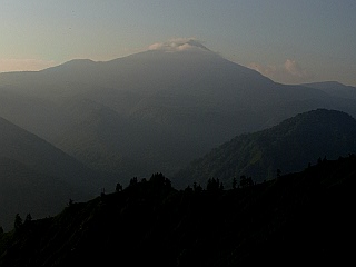 | 左右の切り立った尾根が続く | ようやく太陽が姿を現す | 尾瀬の燧岳 |