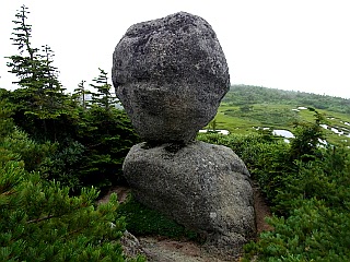 | 玉子石は想像していたより小さかった | 玉子石の帰りに平ヶ岳山頂部を望む | 玉子石の帰り道から池ノ岳を見上げる |