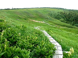 | 長い長い登山道を辿り、山頂一帯に花咲く湿原を擁する日本百名山を目指す | ||