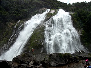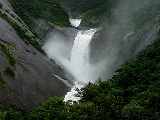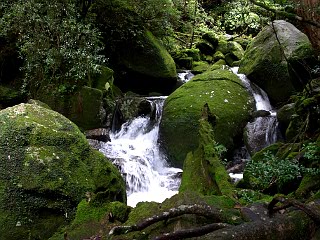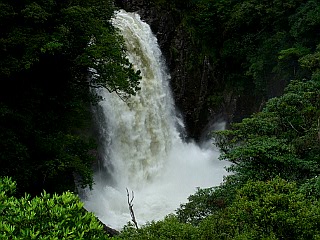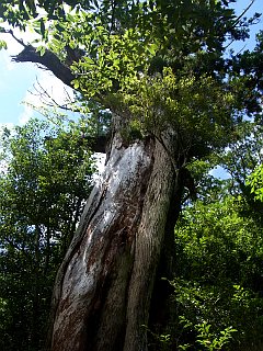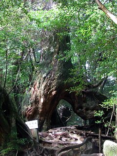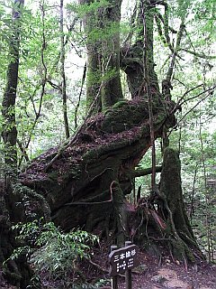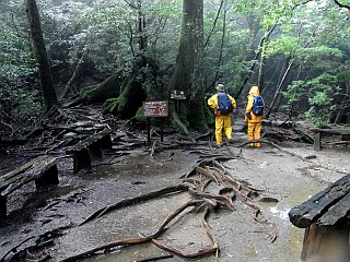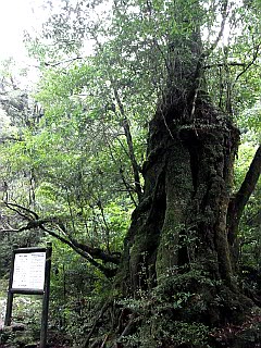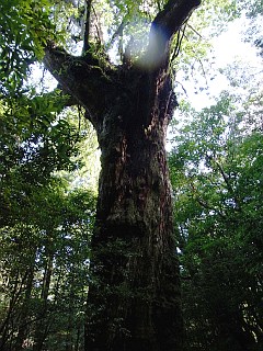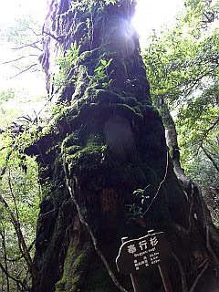 | 山行記 | ●屋久島も最終日。昨日行く予定だったが、雨で中止した白谷雲水峡へ行くことにした。ここは、古くから行われた伐採のため屋久杉は少ないが、苔蒸した森が、ジブリ映画「もののけ姫」のモチーフとなったことから、脚光を浴びることになったところだ。 ●天気は大丈夫の筈だったが、駐車場に着いた途端、雨が降り出し、いきなりカッパを着ての出発となってしまった。駐車場からは、少し戻り、管理棟で森林環境整備推進協力金1人300円を納めて入場することになっているが、管理人もまだおらず、釣銭が無いので、帰りに納めることにして、川沿いの道を歩く。 ●最初の吊橋の飛竜橋は渡らずに進むと、川は飛竜おとしという滝になっており、その迫力ある景観を見ながら登る。弥生杉への分岐を過ぎると、すぐに原生林歩道との分岐となるさつき吊橋のたもとに出るので、これを渡って楠川林道を歩く。 ●やがて渡渉点が現れるので、それを慎重に通過すれば、原生林歩道との合流点に出る。くぐり杉をくぐり更に進むと白谷小屋が見えるが、ここからが、このコースの見所の苔蒸す森だ。ここまでも苔の多い森だったが、更に見事な苔蒸す森が広がっており、記念撮影のためのスペースなどもあった。 ●苔蒸す森を楽しみながら若干登りが急になってくると辻峠に到着する。ここからまっすぐ進むと大株遊歩道と合流し、縄文杉方面へと続くが、ここは太鼓岩方面へと進む。 ●太鼓岩へは、上り下りそれぞれ一方通行となっている。急な斜面は薄暗くて大変だが、途中ヤクジカが現れたりして気が紛れる。天気もよくなってきたようで、晴れ間も見え始め、期待が高まる。 ●太鼓岩は大きな露岩で、到着したときはガスがかかって何も見えなかったが、時折ガスの合間に宮之浦岳や永田岳などの、海岸線からでは望むことのできない奥山や奥深い密林地帯を望むことができた。 ●特に、一昨日登った宮之浦岳は、密林の奥に聳え、ここまで行くことができたのかと、ひと際感慨深い。あらためて屋久島の山々の奥深さを実感できる場所だった。 ●何時までもこの景観を楽しんでいたいところだが、ここは、後から追い付いてきた、賑やかな若者の集団に譲って下山を開始する。先程の原生林歩道との分岐まで戻り、今度は原生林歩道を行く。この時間になって、多くの登山者が登ってくる。宮之浦岳とは違い、軽装な人が多く、いわゆる「山ガール」が大量発生だ。 ●このコースは、幾つかの屋久杉と伐採後に芽生えた二代目、三代目などの杉が多く、古い杉には、杉以外の植物も着生している。大きな杉にはそれぞれ名前が付けられ、表示されているが、このコースは徒渉も多く若干歩き難く、遠回りにもなる。 ●さつき吊橋で元のコースと合流すると、すぐに弥生杉への分岐があるので、今度は弥生杉歩道へ進む。この道は、原生林歩道よりもよく整備されていて、歩く人も更に軽装で、スカートの人まで見かけた。 ●遊歩道のように整備された道を進むと、この一帯で一番古いとされる弥生杉を見ることができる。さすがに、他の杉とは違う大きさと歴史を感じる大木だ。 ●天気もすっかり良くなり、朝の雨は何だったのだろうと思う程だ。しかし、今日は帰る日だ。弥生杉からそのまま下ると、管理棟の所に出るので、森林環境整備推進協力金を納めて、駐車場まで戻り、帰りの支度を始めた。 |