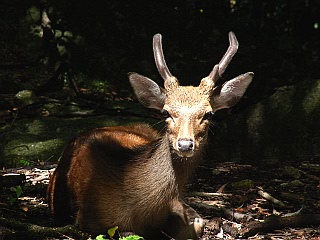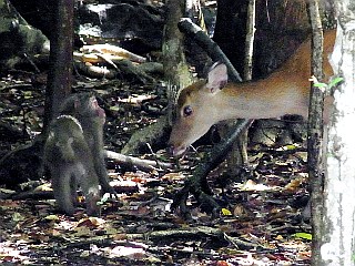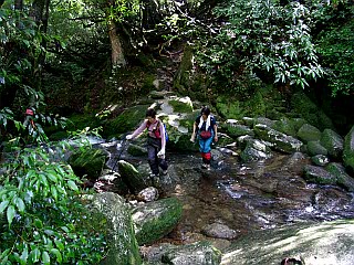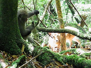 | 渡渉も多い原生林歩道 | 原生林歩道 | ヤクジカとヤクザルは仲がいい |