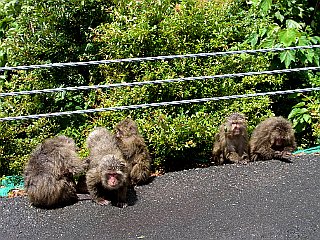 | ヤクジカとヤクザルは仲がいい | 道路沿いに現れたヤクザル | 道端にどっしりと座る雄のヤクジカ |