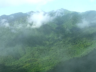 | 辻峠 | 太鼓岩から見た宮之浦岳 | 原生林の向こうに奥山の山並が見える |