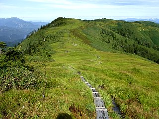 | 会津駒ヶ岳山頂 | 中門岳方面に広がる伸びやかな稜線 | 駒ノ小屋 |