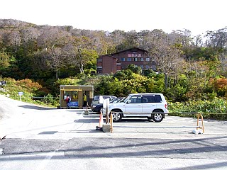 | リフト上駅付近も紅葉が美しい | 登山者や観光客で賑わうリフト上駅 | リフト下駅とその先に駐車場が見える |