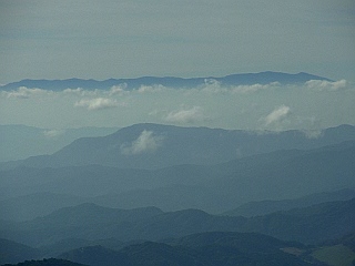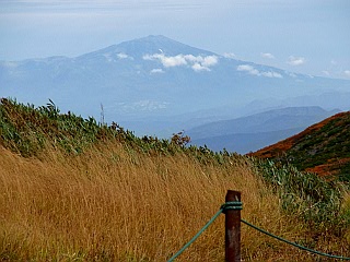 | リフト上駅付近から月山を見上げる | 背後には朝日連峰が連なる | 昨日登った蔵王山 |