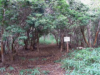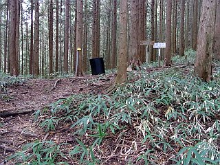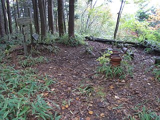 | アセビのトンネルを抜けると林相が変わる | 天狗の庭 | 碁盤石山山頂直下の水場の看板 |
