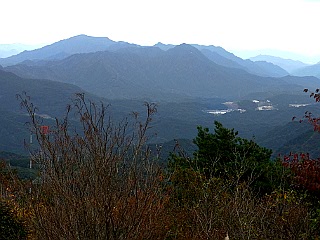 | 山行記 | ●この日はまず大鈴山に登ったが、まだ時間があるので、碁盤石山へ寄っていくことにした。2本目なので途中の林道から登ろうと思ったが、時間的にもそれほど大きくは変わらないので、結局下から登ることにした。 ●何時ものように登山口のすぐ先にある駐車スペースに車を置いて登り始める。薄暗い登山道は、2つ目の擬木の太鼓橋を越えると明るい伐採地に出る。その先で再び薄暗い樹林帯に入ると、すぐに胸突坂の下に出る。 ●胸突坂は、その名のとおり急な階段が続く頑張りどころだ。やがて傾斜も緩くなると、樹脂製のベンチが並ぶ喫煙所が現れる。そして、そのすぐ先で舗装された林道に出る。 ●林道はここで車止めがしてあるが、広い駐車スペースになっているので、ここまで車で入ることができ、実際に、この日も既に1台の車がとめてあった。 ●林道を横断し、右手の木々の間に高圧線鉄塔を見て、その先で「七尋岩」という大岩が現れると道は右に折れる。しばらくリョウブの樹林帯を緩やかに登ると、短いアセビのトンネルが現れ、それを抜けるとブナやミズナラの雑木林となり、傾斜も増してくる。 ●やがて、樹林が切れると天狗の庭に着く。天狗の庭には、ススキが繁茂し、秋の花で埋め尽くされていたかつての面影はなく、リンドウやヤマラッキョウがススキの中でかろうじて咲いている程度だった。 ●天狗の庭からは、アセビの多い薄暗い樹林帯に入り、緩やかに登ると、富士見岩への分岐に出る。この辺りから、道が見えない程繁茂したのササの中を漕ぐようにして歩くようになる。 ●ササがなくなる樹林帯に入ると、一旦下り、最低鞍部の水場への案内看板の所から山頂への登りに取り掛かる。階段の付けられた急な坂を登りきったところが碁盤石山の山頂だ。 ●山頂には三角点があり、木の間から茶臼山と萩太郎山を見ることができる。紅葉はこの標高でもまだ始まったばかりで、例年と比べると遅いような気がする。 ●帰りに富士見岩に寄ってみると、ススキの向こうに、三ツ瀬明神山を始め、先程登った大鈴山や宇連山、遠くは本宮山まで見ることができた。 |
