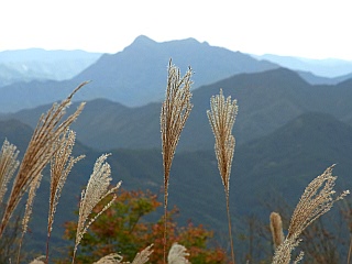 | ササとススキが繁茂し、花も少なくなった碁盤石山 | ||
