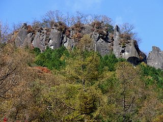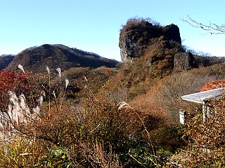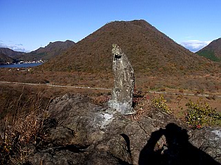 | 山行記 | ●前々からその山容が気になっていた榛名山だが、紅葉もいい頃だと思い、突然だが行ってみることにした。とはいっても豊川からは、400km以上、5時間近くかかる遠さなので、前日の夜11時過ぎに出て、休み休み登山口のヤセオネ峠を目指す。 ●松井田妙義ICを下りると、明るくなり始めた空を背景に榛名山のシルエットが浮かび上がる。峠道からは、朝日に照らされた紅葉した山肌が美しく見える。どうやら、今日は天気がよさそうだ。 ●ヤセオネ峠の駐車場に車をとめ歩き出す。相馬山へは黒髪神社の鳥居を潜って緩やかな道を進む。途中、相馬山と書かれた赤い鳥居から、遊歩道と分かれて相馬山への登りに取り付く、登山道は、屹立した山の形が物語るように、急坂が続き、梯子や鎖も現れる。 ●急坂が一段落すると相馬山の山頂で、黒髪神社が祀られている細長い山頂からは、山並みが美しく、富士山も確認することができた。 ●一旦赤い鳥居まで戻って長い階段を下ると、磨墨峠に付く、峠からは異様な形をした磨墨岩が見えるが、岩上は展望がよさそうなので登ってみると、榛名富士を始めとする榛名山の山々のパノラマを見ることができた。 ●磨墨岩分岐からは、外輪山周遊コースに戻る。しばらく緩やかな道が続くが、メロディー舗装のしてある車道から、車が通る都度、「静かな湖畔」のメロディーが聞こえてきた。 ●そのまま進むと松之沢峠で車道に出合うので、車に気をつけて対岸に渡り、再び山道を進む。名残の紅葉と樹間に見える榛名の山々を見ながらアップダウンを繰り返し進むと、三ツ峰山への分岐に着く。 ●「↑25↓15」という案内だったので、行ってみることにした。分岐から一旦下り、急な斜面を登る。油断するとずり落ちそうな急坂を登りきると、後は緩やかに下り再び緩やかに登ったところが三ツ峰山の山頂だ。 ●三ツ峰山山頂には小さな山名表示があるだけで、狭く展望もよくないので、すぐに元の道まで戻って続きの道を歩く。再び車道に出たところが七曲峠。そこから対岸の道を登り始める。 ●傾斜は次第に急になり、延々と続く木の階段に嫌気がさす頃、天目山の山頂に着く。山頂は狭い上、この時間帯になって多くなってきた団体の登山者に占領されていた。展望もきかないので更に先に進む。 ●天目山からの下りも登りの階段以上にきつく、登ってくるバテバテの登山者を見ながら慎重に下った。樹間に見える榛名湖が近くに見え、標高が下がってきたことを感じる。再び階段の急登が現れ、それを登りきったところが氷室山の山頂らしい。 ●道は更に高度を下げ、やがて榛名神社への分岐となる広場に出る。この広場のすぐ下が天神峠で、多くの車が行き来していた。そして、天神峠からの道が湖畔の道と交わったところに湖畔の宿公園がある。 ●そこから、湖畔の道を歩きながら今度は掃部ヶ岳への登山口を探すが、なかなか見つからず、結局下山予定だった国民宿舎の先の登山口から登ることになった。 ●最初は緩やかな林間のコースには、地元の小学校の児童が付けたと思われる、可愛い絵などの描かれた木の名前の札が掛けてあり微笑ましい。しかし傾斜は次第に急になり、最後に立派な木の階段を登りきると、硯岩への分岐となる尾根道に出る。 ●分岐を左方向に曲がると、木の階段が始まるが、これが尋常な段数ではない。ざっと数えても700段以上はある階段は、登っても登ってもその先が続いており、うんざりとする。しかも、山頂が近付くと更に段差が大きくなり、既に何キロか歩いてきた身には応える。 ●とにかく我慢して登り続けると、展望の開ける場所に出る。そこからは榛名湖を囲むように聳える外輪山が一望にでき、今までの疲れも吹っ飛んでしまいそうな絶景だ。そこからは、遠く広大な関東平野への展望が広がり、少し霞んではいるものの、東京の高層ビル群やいま建設中の東京スカイツリーまで確認することができた。 ●展望所からは、掃部ヶ岳山頂は目と鼻の先で、狭い山頂は、休憩する場所もないくらい多くの登山者でごった返していた。そこからは、奇岩が並ぶ妙義山や、すっぱりと切れ落ちた荒船山の艫岩などがよく見えた。 ●とにかく居る場所もないので、先程の展望地で軽く食べ物を補給してきた道を戻り、湖畔の道を歩いて榛名富士の登山口を目指す。湖畔は紅葉も見頃で、多くの観光客が紅葉を楽しんでいたが、山登りをする身ではゆっくりしてはいられないので、車道を歩き続けた。 ●榛名富士の登山口はゆうすげ元湯の裏から始まる。登山道は整備されていないという看板があったが、多くの人が歩いているらしく、特にわかり難いとか難しい箇所もなく、ジグザグにひたすら登っていく。 ●しだいに傾斜が緩くなると、程なく山頂に到着する。榛名富士神社の建つ榛名富士山頂は、ロープウェイで登ることができるため、今までの登りの時からは想像のつかない程の観光客で溢れていた。 ●榛名富士山