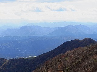 ![]() 掃部ヶ岳山頂から見た妙義山と荒船山 |