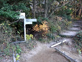 | 舗装道と山道の合流点 | アオキの多い坂を登れば五井山山頂だ | 五井山山頂 |
