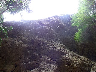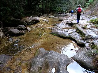 | 乳岩登山口の駐車場 | 乳岩峡の一枚岩は雨に濡れて滑りやすい | 乳岩分岐 |