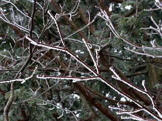 | 明神山山頂はすぐそこだ | 明神山山頂はすぐそこだ | 明神山山頂展望台から霧氷を見る |