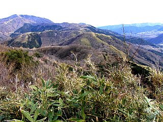 | 稜線から見る大室山から大山へ続く丹沢の主稜線 | ||