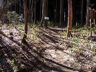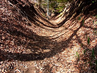 | 葛城山山頂部を見上げる | 明るい雑木の掘割状の道を進む | 自然研究路分岐 |