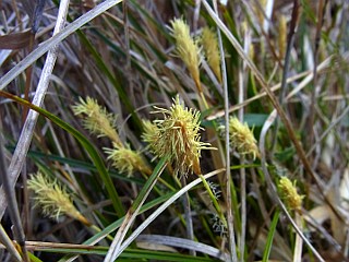 | 山行記 | ●そろそろハルリンドウやシュンランが咲いていないかと、今年になって初めて金山と雨生山を訪れた。3月になって朝晩の寒さは変わらず、道々霜が下りているのを見ながらいつもの比丘尼駐車場へ向かった。 ●やはり朝早いので車は1台もとまっていない。早速花粉対策のマスクをして歩き始めた。この頃なら早速ショウジョウバカマが出迎えてくれそうなものだが、その葉すら見つけることができなかった。 ●東屋の手前ではハルリンドウが、と思ったがやはり葉っぱも見つけることができなかった。昨年の今頃の記録を見ても、既にハルリンドウやショウジョウバカマが見られたはずだが、今年の花の開花はかなり遅れているようだ。 ●東屋から急坂を登って比丘尼城址の一画に出るが、ナガバノコウヤボウキなどの花後の綿毛が残るだけで花は見つけることができず、植樹された河津桜だけが咲き始めていているだけだった。 ●いつものように愛の鐘を一鳴らしし、「おすすめの小径」と分かれて樹林帯に入ると、白い小さな花を付けた木を見つけた。近くで見てみると、コショウノキの花だった。以前にもここで見たことはあるが、ここ数年出合ったことがなかったので少し嬉しかった。 ●林道を横切り、対岸の急斜面に付けられたジグザグ道をを登りきると金山山頂に着くが、この間も花を見つけることは出来なかった。金山山頂は展望がなく、以前は展望のよかった電波反射板の所からも、最近伸びてきた草木であまりよくないので先に進む。 ●県境稜線は、台風などで倒れた木が多く、落葉の時期でもあるので明るい。アセビの花が一斉に咲き始め、所々で白い花が目立っていたが、ウグイスカグラなど、昨年この時季に見ることができた花もまだまだのようだ。 ●蛇紋岩の開けた裸地でもハルリンドウを探してみたが、蕾すら見つけることができなかった。雨生山周辺でも昨年同時期に咲いていたシュンランが咲いておらず、ヒメカンスゲの地味な黄色い花だけが散見されるのみだった。 ●稜線から林道方面へ下りるが、ここもハルリンドウはまだなく、そのまま林道に出る。林道沿いは明るく比較的暖かいのでキブシやヒサカキが咲き始めているが、草花は蕾も見つけることができない。鉄塔巡視路から再び「おすすめの小径」に入っても同じで、花の開花は1週間から2週間は確実に遅れているようだ。 |