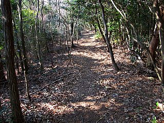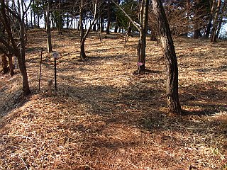 | 金山山頂 | 県境稜線は倒木や落葉で明るい | 新城方面下降点 |