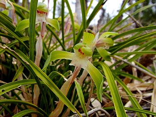| 山行記 | ●春の花の開花が遅れていた今年の里山だが、そろそろシュンランが咲く頃ではないかと思い出かけてみた。時間が遅くなったため駐車場は既に満車のようで、駐車場の下に多くの車が置いてあったので、こちらも溜池の下の道路沿いの余地に駐車して出発した。結局、比丘尼の駐車場は余裕があったが、周回コースなので何処に駐車しても同じことだ。 ●比丘尼城址は今何種類もの桜が咲いていて華やかだ。足下にはフイリフモトスミレが咲き始めており、注意をしていないと目にとまらない程の小さな花が静かに咲いていた。ショウジョウバカマも少し咲いているが、このあたりのハルリンドウは蕾を幾つか見るだけだった。 ●東屋は、大きなパーティーで貸切状態で、加えて天候も曇りですっきりとした展望は期待できないので、立寄らずに通り過ぎ、まだ桜以外の花が咲いていない比丘尼城址跡への急坂を登る。愛の鐘まで行ってもこれといった花はなかったが、おすすめの小径と分かれてすぐのところのミツバツツジはよく咲いていた。 ●金山へ向かう樹林の中は意外にも賑やかで、コショウノキやヒサカキ、シキミの花は最盛期を迎えており、ミヤマシキミやアオキの花もちらほらと咲き始めていた。 ●林道を横断し、再び樹林帯の中をジグザグに登る。金山の山頂近くではフイリフモトスミレなどの小さな葉やカンアオイの新しい葉が地味に成長していた。 ●金山山頂から明るい県境稜線を歩く。ヤブツバキやアセビ、シキミ、クロモジ、ヒサカキなど、木の花が目立ち、期待していたヤマウグイスカグラの花はやっと咲き始めたところだった。 ●周囲の開けた蛇紋岩地帯では、ハルリンドウが咲き始め、クサボケやセンボンヤリも散見された。蛇紋岩地帯から雨生山にかけては目的のシュンランを探すが、まだ少し早いのか、葉は見かけるが花があるものは少なかった。県境稜線から林道へ向かう途中のハルリンドウもまだまだのようだった。 ●林道に入ると、クロモジやヒサカキ、ヤブツバキ、キブシなどの木の花に加え、ニオイタチツボスミレやヒメウズなどがよく咲いていた。 ●76鉄塔入口から再びおすすめの小径に戻るが、こちらのハルリンドウはまだまだ、クサボケが稀に咲いているだけだった。最後の急坂を下っておすすめの小径を出ると田圃の中の道を歩いて駐車地点まで戻った。 |