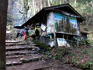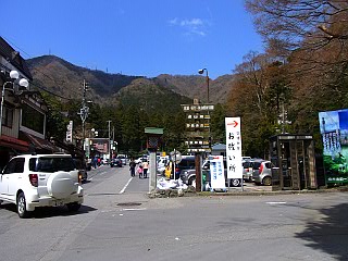| 弥彦神社参道と弥彦山 | 弥彦山登山口 | 茶店も営業している |