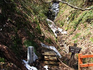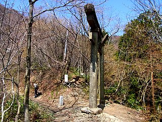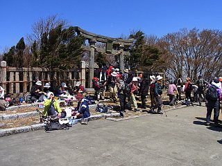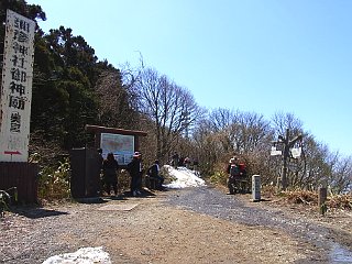 | 合目毎の石柱が山頂まで案内してくれる | 鳥居の建つ五合目 | 六合目ぐらいから残雪が目立ち始める |