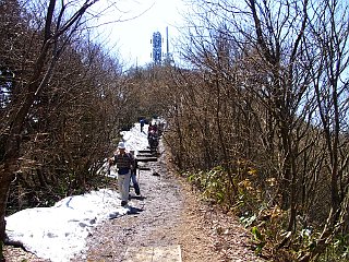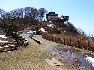 | 七合目には休憩所もある | 日陰にはまだまだ雪が残る | 九合目で稜線に出る |