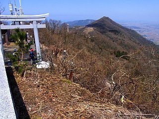 | 山頂の弥彦神社御神廟 | 山頂から見る多宝山、奥は角田山 | ロープウェイ駅前広場 |