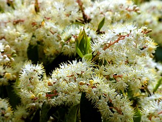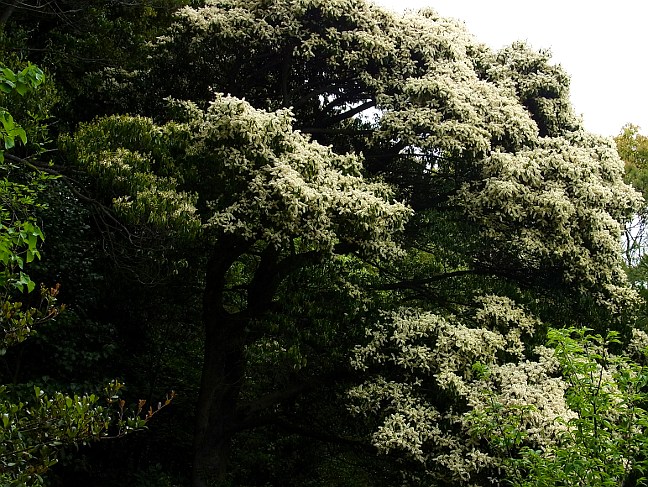 ![]() 雪が積もったようにびっしりと小さな花を付けたクロバイ |