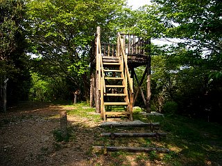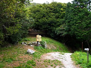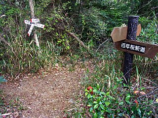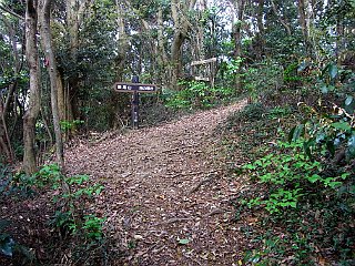 | 展望台のある衣笠山山頂 | 林道終点の松尾尾根コース入口 | 衣笠自然歩道入口 |