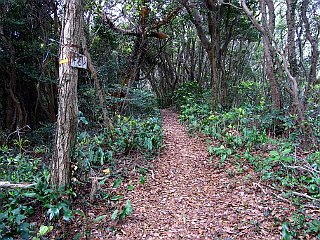 | 行程 | 衣笠自然歩道駐車場(6:45)・・・クチナシの道入口(6:55)・・・扇原(7:19)・・・赤松山(7:26)・・・不動岳(7:39)・・・迷子尾根ノ頭(7:48)・・・三ツ俣(7:52)・・・林道(8:03)・・・長興寺分岐(8:07)・・・中西山(8:09)・・・滝頭山(8:14)・・・仁崎峠(8:28)・・・東屋(8:44)・・・桟敷岩新道・直登コース分岐(8:49)・・・衣笠山(9:06-13)・・・松尾岩(9:20)・・・林道終点(9:23)・・・衣笠自然歩道入口(9:36)・・・衣笠自然歩道駐車場(9:37) | |