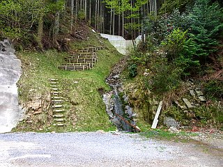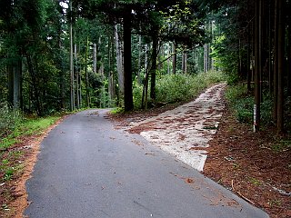 | 風頭山登山口 | 林道分岐手前の橋 | コンクリートの舗装道終点 |