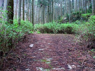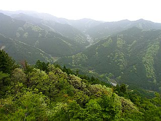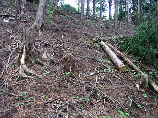 | 休憩所から見た本宮山方面も黄砂で霞む | 下降を開始する | 堰堤のある谷に下りてきた |