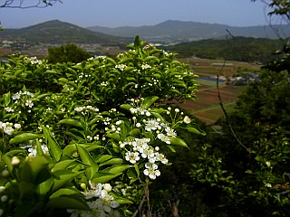 | 比丘尼駐車場 | 咲き始めたカマツカと吉祥山、本宮山 | 東屋から見る雨生山 |
