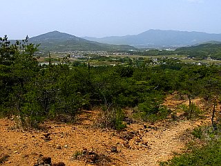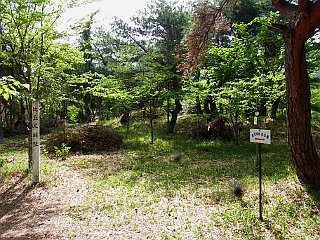 | 比丘尼城址 | 愛の鐘 | 愛の鐘付近から見る新緑と金山 |